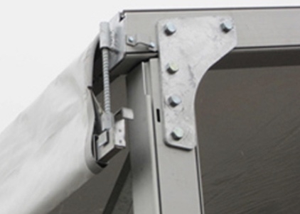 Techo: Tejido de PVC blanco de alta resistencia de 850 g/m2, bloqueante, 100% impermeable, ignífugo (DIN4012 B1, M2), resistente a los rayos UV.