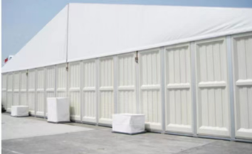 Paredes: Tejido de PVC blanco resistente de 650 g/m², semibloqueante, 100% impermeable, ignífugo (DIN4012 B1, M2), resistente a los rayos UV.